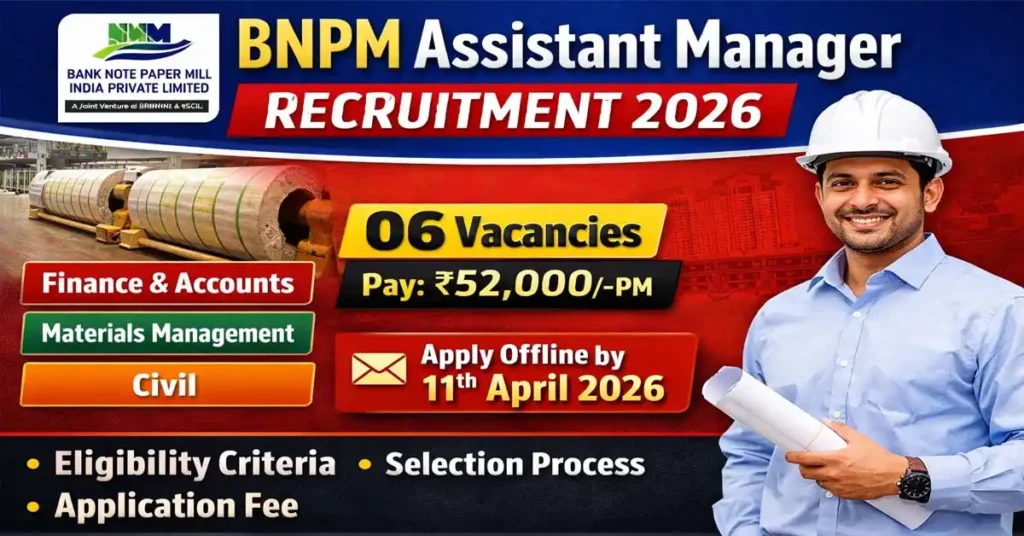 Are you from Mysore district? Do you want to get a job in a government organization in your district? Then, here is good news for you. Bank Note Paper Mill India Private Limited (BNPM Recruitment 2026), a company operating under the Central Government and located in Mysore, has issued a notification for the recruitment of two vacant posts.