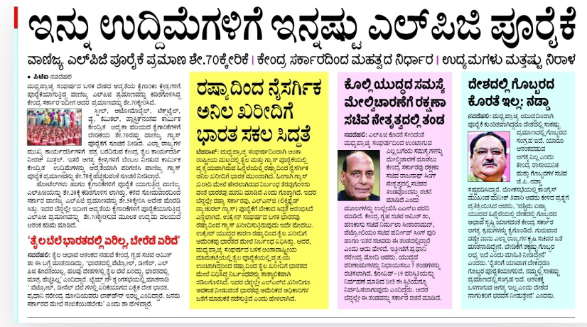 · Context: A protest by handloom workers or weavers in Davangere (a city known for its textile industry) has been settled after negotiations or government intervention. - More LPG supply to industries now.