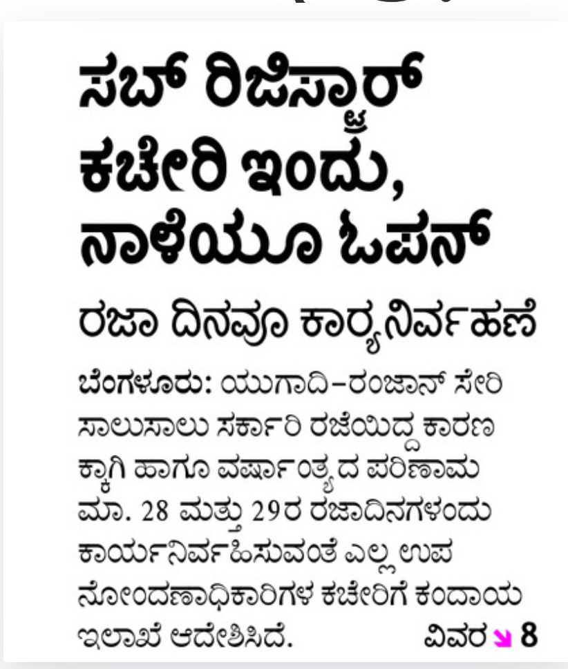 · Context: Sub-Registrar offices (for property registration and document verification) will remain open on a weekend (Saturday and Sunday) to clear backlogs or for public convenience. - Another drug network busted in Mysuru.