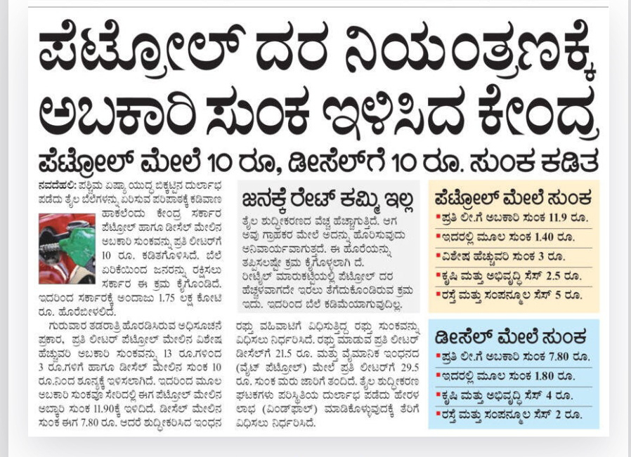 · Context: Despite the government reducing taxes (such as excise duty or VAT), petrol prices have not been lowered for consumers, indicating that oil marketing companies may not have passed on the benefit. - Davangere handloom protest resolved.