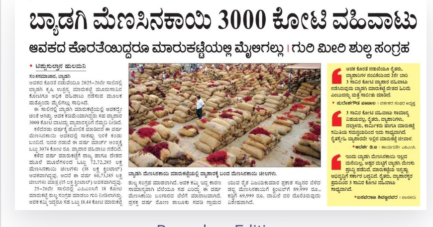 Badagi chillies trade worth Rs 3000 crore