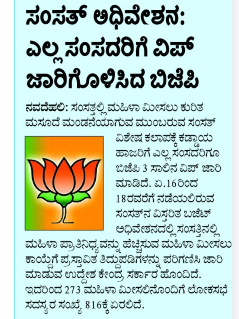 BJP issues notice to all MPs for Parliament session