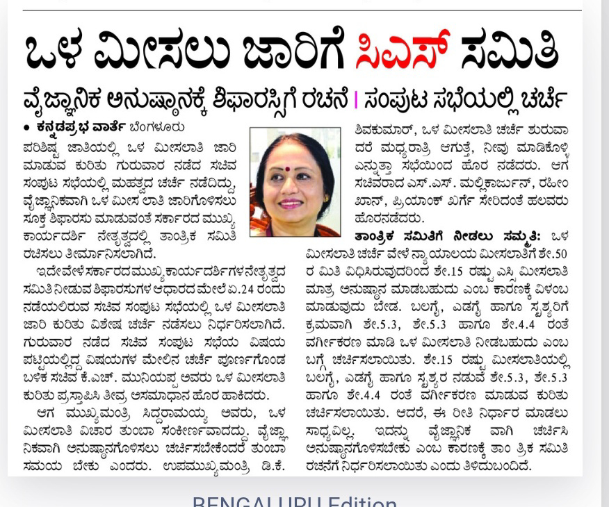 CS committee formed to recommend scientific implementation for internal reservation
