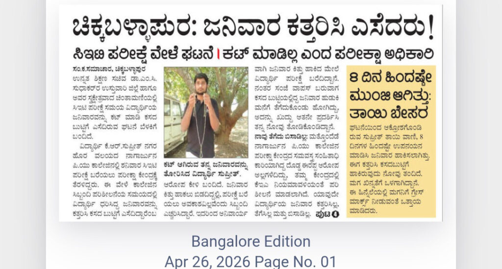 - Chikkaballapur: Knife thrown on January – Local violent incident, Police action required. The short answer to your question: Yes, the failure of SSLC in Kannada is not limited to the children, but is also a reflection of the shortcomings in the teaching curriculum and learning environment. Teacher training, curriculum quality, and assessment systems need to be reviewed.
