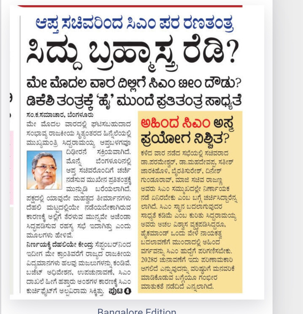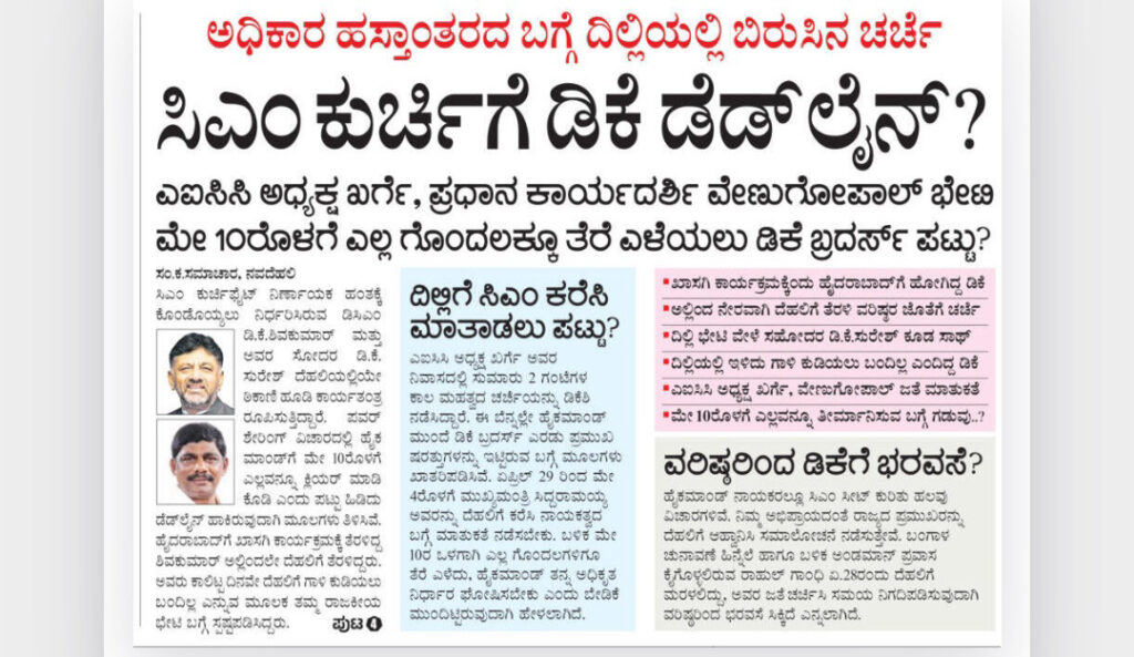 - DK deadline for CM’s chair and Sidhu Brahmastra ready – Political speculations, indication of competition.