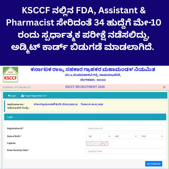 The Karnataka State Cooperative Consumers’ Federation (KSCCF) has released the Hall Ticket for the competitive examination scheduled for May 10, 2026.